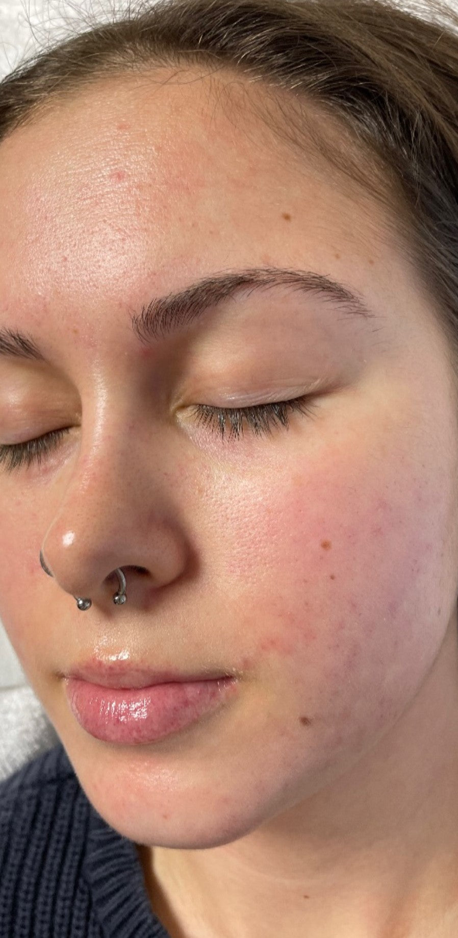 Start with a gentle cleanser to remove makeup, oil, and impurities. Pat your skin dry with a soft towel.
